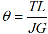 where ,T is torque applied, J is polar moment of inertia of the cross section of the bar, G is modulus of rigidity and L is length of the bar